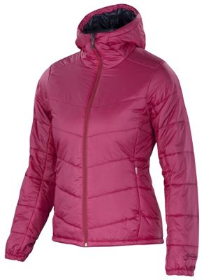 Features of the ibex women s wool aire hoody warm wool insulated jacket reverse coil full zip 6 hand warmer pockets adjustable hem and hood with cord lock system.